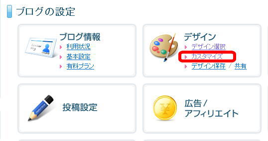 - ブログ設定をクリック!